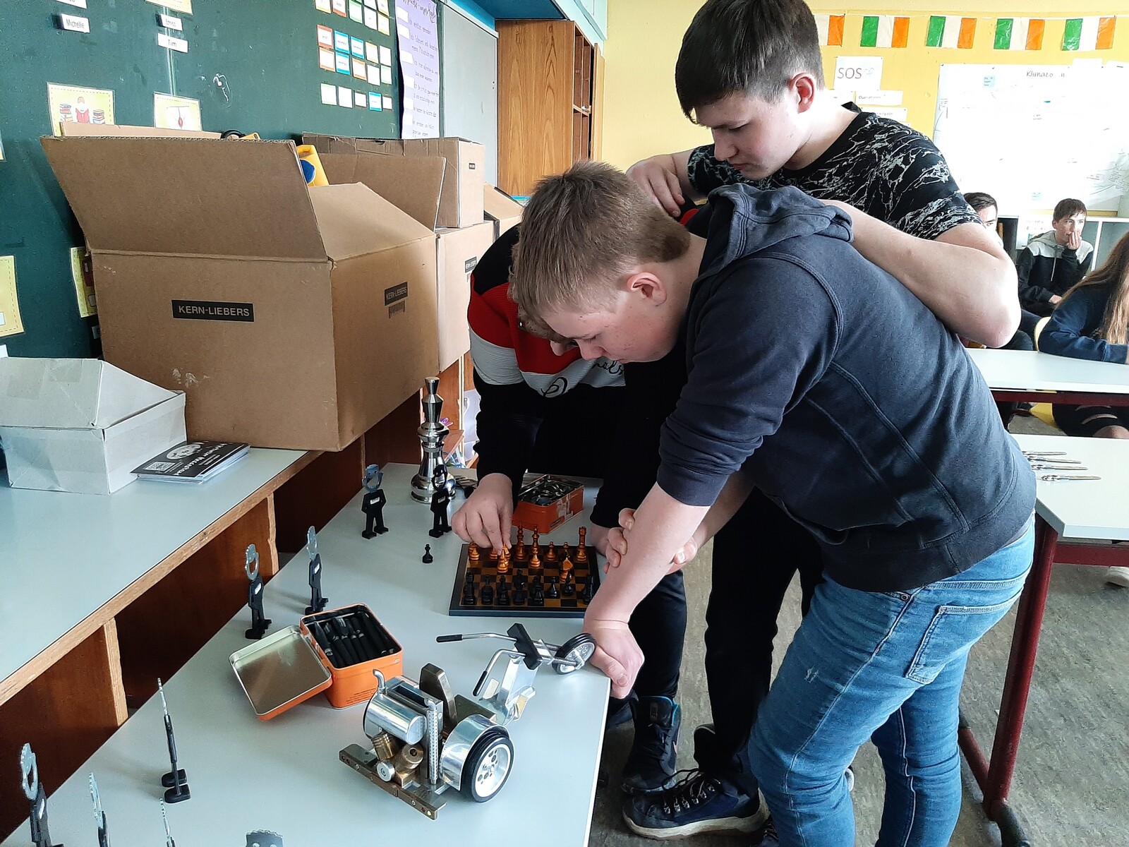 Abschließend konnten die Schüler anhand eines Schaukastens selbst mechanische Abläufe beobachten. Jeder Schüler erhielt zum Schluss noch eine Kern Liebers Tasche mit verschiedenen Präsenten.