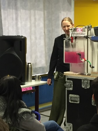 Das Science Mobil war Gast bei den Schülern der 7., 8. und 10. Klasse der Werkrealschule Villingendorf. Bei der berufsorientierenden Show „Chemikant & Co. - die geniale Quizshow“ drehte sich alles um ungewöhnliche Materialien und welche Berufsgruppen sie herstellen. So produzierten die Jugendlichen beispielsweise aus Silikon und Speisestärke einen Kunststoffhenkel. Die Schülerinnen und Schüler erfuhren, wie Kriminalisten Blutspuren nachweisen, auch wenn diese mit dem bloßen Augen nicht mehr sichtbar sind. Auch die Frage, ob Autolacke in Zukunft je nach Sonneneinstrahlung ihre Farbe verändern und somit Energiekosten senken könnten, war Thema des spannenden und interessant gestalteten „Unterrichts“. Anhand von Versuchen und Quizfragen gelang es, den Jugendlichen eine Vorstellung von Tätigkeitsfeldern in der Chemie zu vermitteln. Und wer weiß, vielleicht entscheidet sich eine oder einer für eine Ausbildung in der chemischen Industrie.