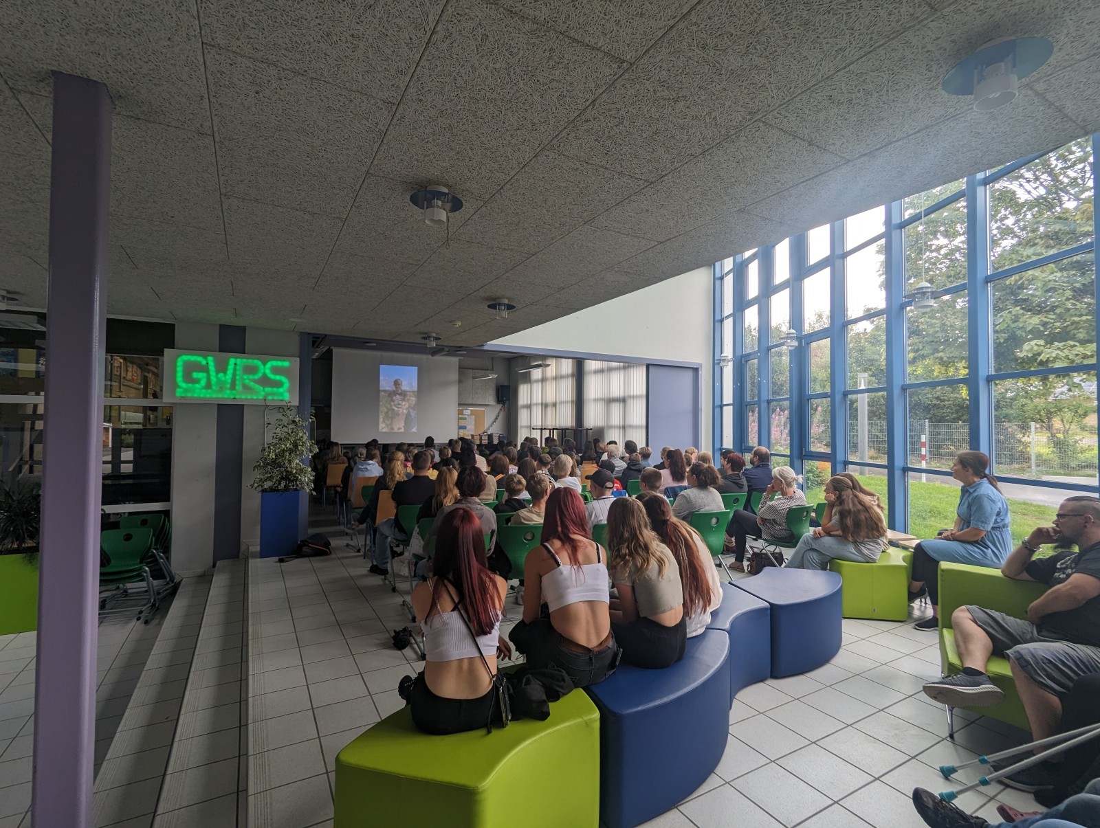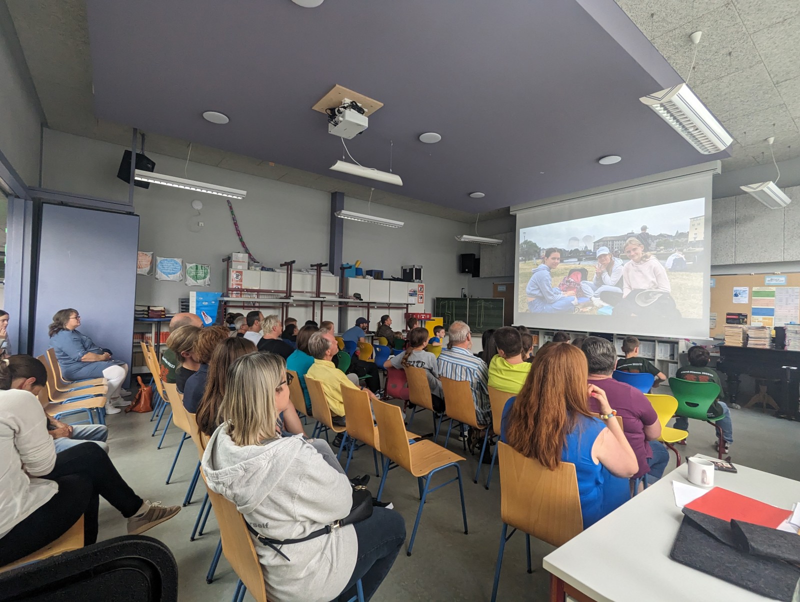 Im Rahmen des irischen Abends konnten die Schülerinnen und Schüler der Irlandklasse nochmals in Erinnerungen an ihre Irlandreise schwelgen. Rund 100 Zuschauer, bestehend aus den Siebtklässlern, deren Eltern, Geschwistern, Großeltern und weiteren Interessierten als auch den Klassenlehrern Lynda Cullen, Stefan Bihl und Monja Suhm sowie Eugenia Remisch und Viktor Remisch, bestaunten den von der Lehrerin Monja Suhm erstellten einstündigen Film aus Fotos und Videos von der Reise. Ein tolles Jahr mit vielen wertvollen Erfahrungen und einer genialen Reise geht für die Siebtklässler nun zu Ende und sie können gespannt auf die bevorstehende Kompassklasse im achten Schuljahr blicken.