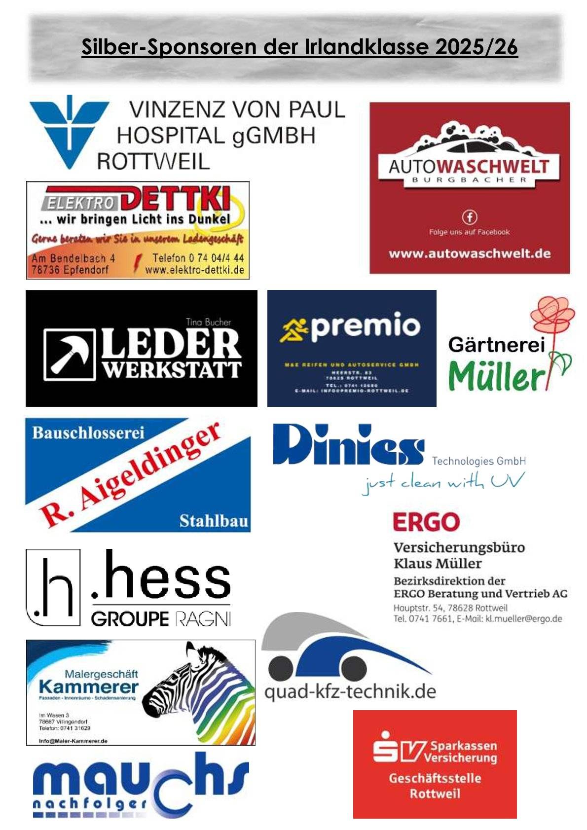 Die Irlandklasse 2025/26 bedankt sich ganz herzlich bei den zahlreichen Sponsoren für die Unterstützung auf dem Weg nach Irland.