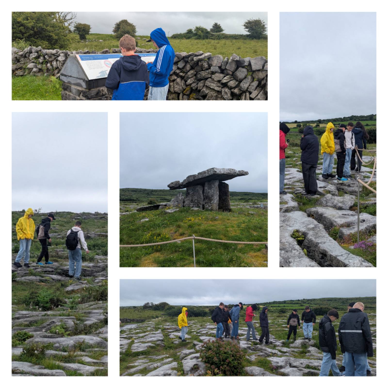 Weiter ging es in die steinige Landschaft des Burren. Wegen Wind und Regen wurde das Vesper kurzerhand im Bus verspeist. Trotzdem ließ sich die Gruppe den Besuch des jahrtausendealten Dolmens nicht entgehen.