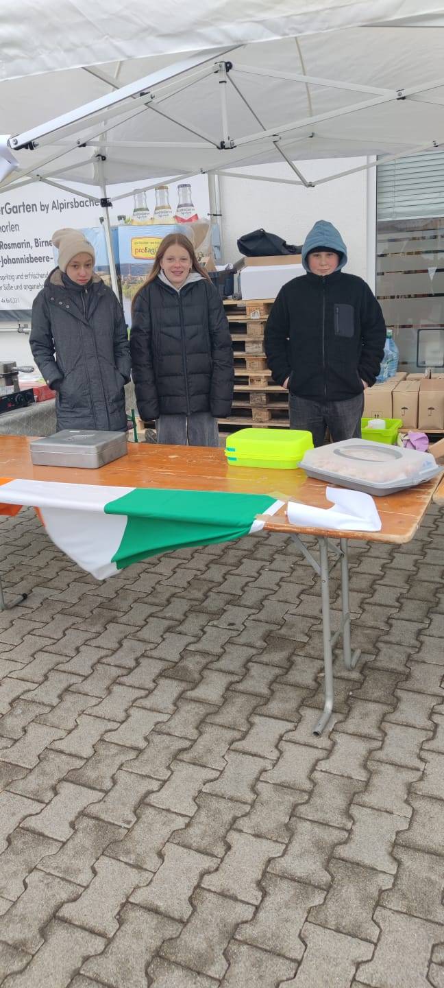 Am Samstag, 15.03.25 waren die Schülerinnen und Schüler der Irlandklasse beim Fristo in Zimmern mit einem Verkaufsstand vor Ort. Trotz stürmischem Wetter, freuten sich viele Besucherinnen und Besucher auf eine warme Waffel oder eine heiße Wurst im Brötchen und deckten sich fleißig mit den selbstgemachten österlichen Geschenkprodukten ein.