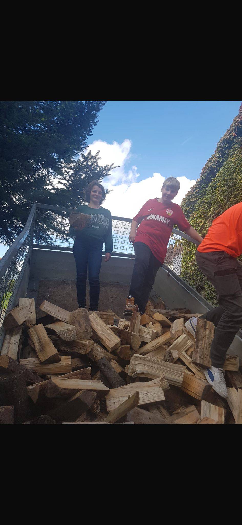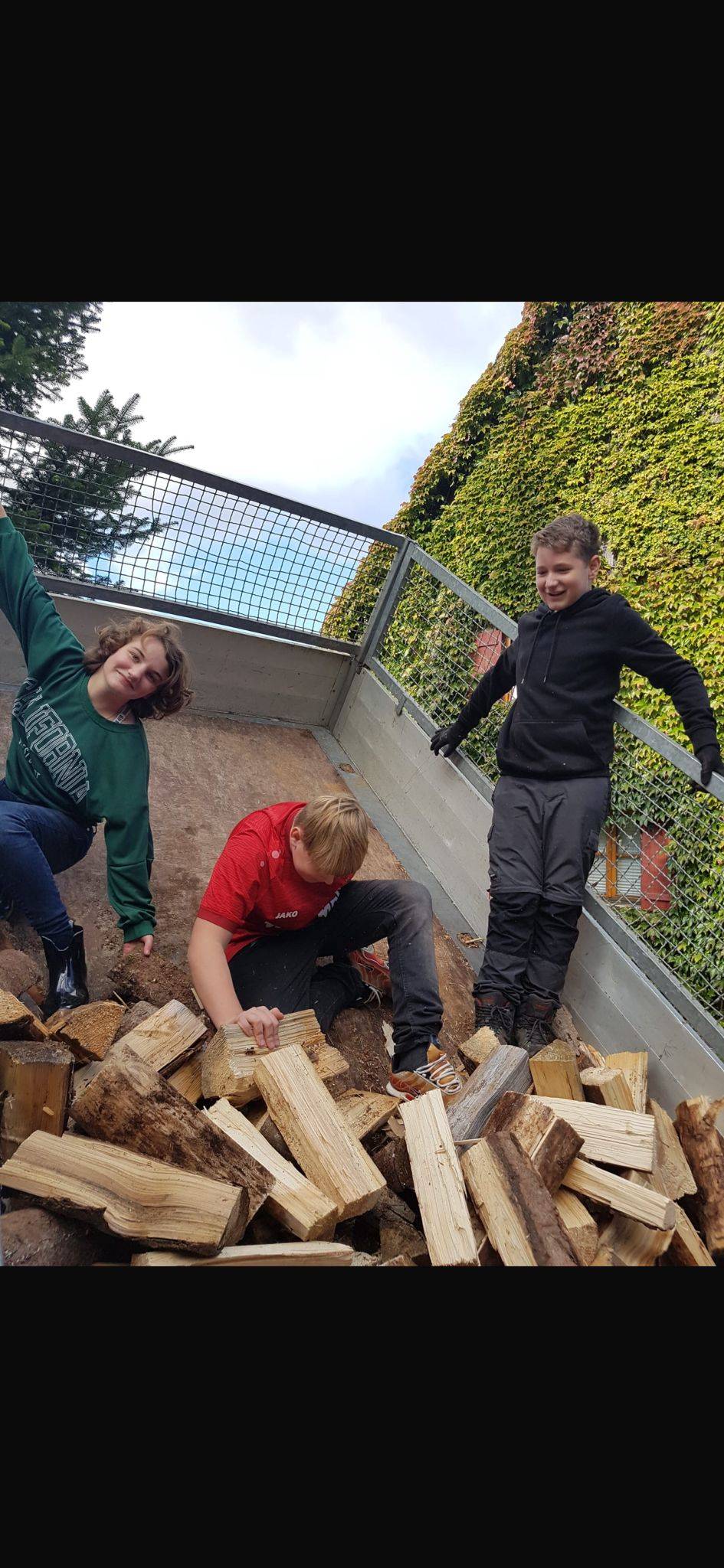 Am Freitag, den 11.10.24 war es wieder soweit und vier engagierte Schülerinnen und Schüler der Irlandklasse konnten tatkräftig beim Holz stapeln unterstützen.