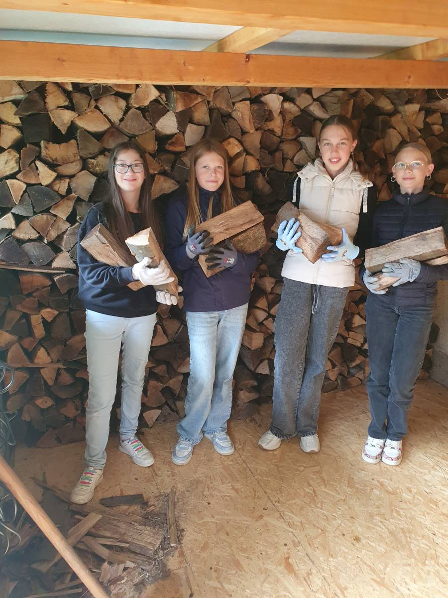 Vier Schülerinnen der Irlandklasse durften bei einer Familie in Villingendorf Holz stapeln und konnten somit wieder den Topf für die bevorstehende Irlandreise etwas weiter auffüllen. "Es hat richtig Spaß gemacht und wir haben viel Lob für unsere Arbeit erhalten", so das Resümee am Ende der getanen Arbeit.