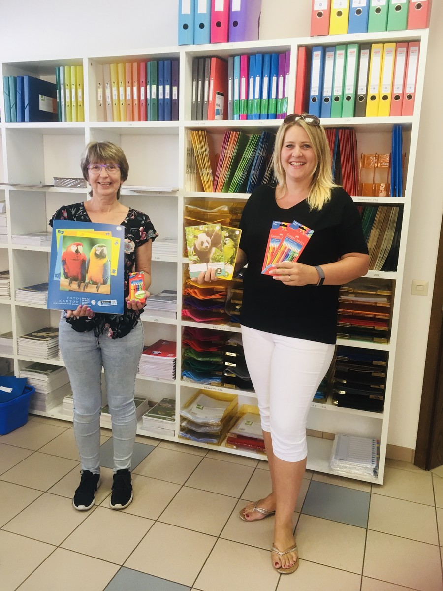 Die Eltern hatten die Wahl zwischen einem „Rundum- sorglos-Paket“ und einem „Heftepaket“. Hier wurde darauf geachtet, dass ausschließlich Hefte mit dem Umweltlogo „blauer Engel“ eingekauft wurden, welche von Ute Haller von der kooperierenden Postagentur Haller sorgfältig gepackt wurden.