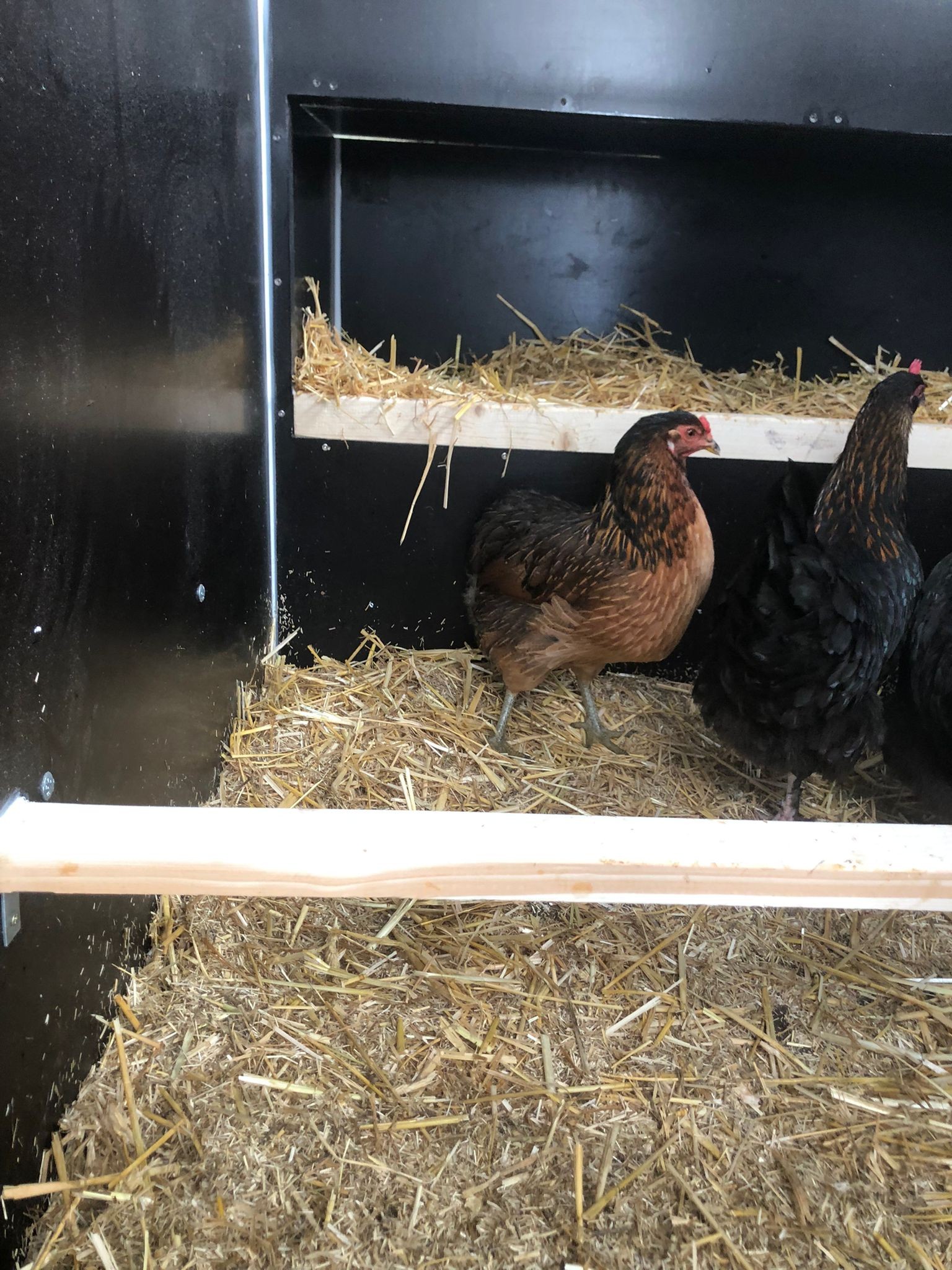 L. H.: „Etwa ein halbes Jahr, zwei Hennen sind gerade erst geschlüpft und drei Wochen alt, diese kommen dann im Mai dazu“.