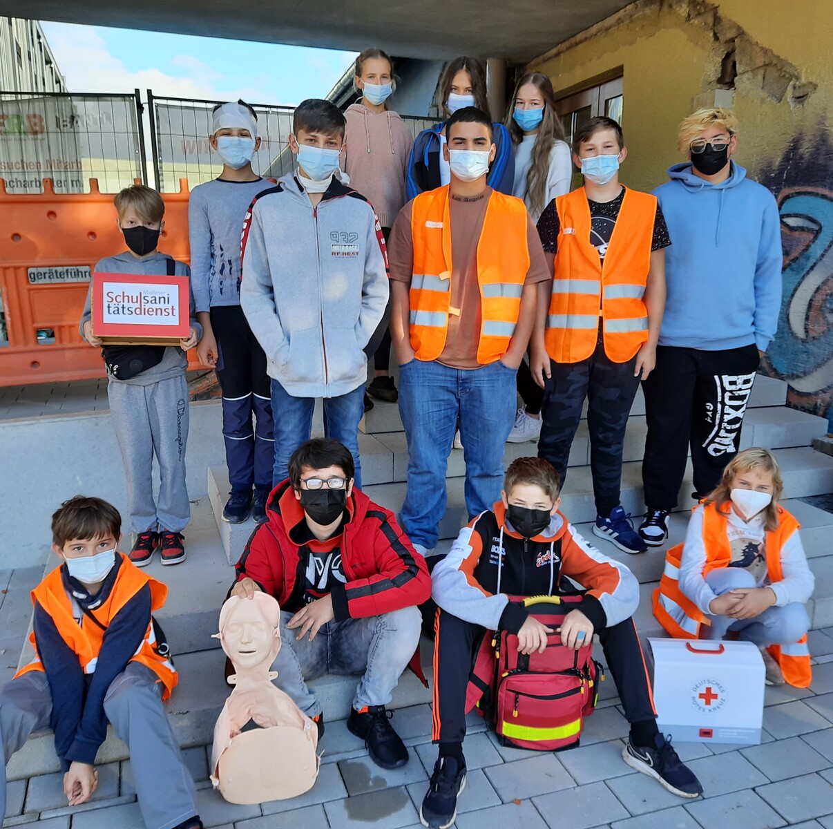 Auch in diesem Schuljahr werden engagierte Schülerinnen und Schüler zu Schulsanitätern ausgebildet. Innerhalb der Sozialwerkstatt erlernen die Jugendlichen die Grundlagen der Ersten Hilfe und erfahren, wie sie sich in Notfällen verhalten, aber auch wie sie Gefahren erkennen können, noch bevor etwas passiert. Ab sofort sind die Schulsanitäter in jeder großen Pause auf dem Schulhof, um im Notfall zu helfen.