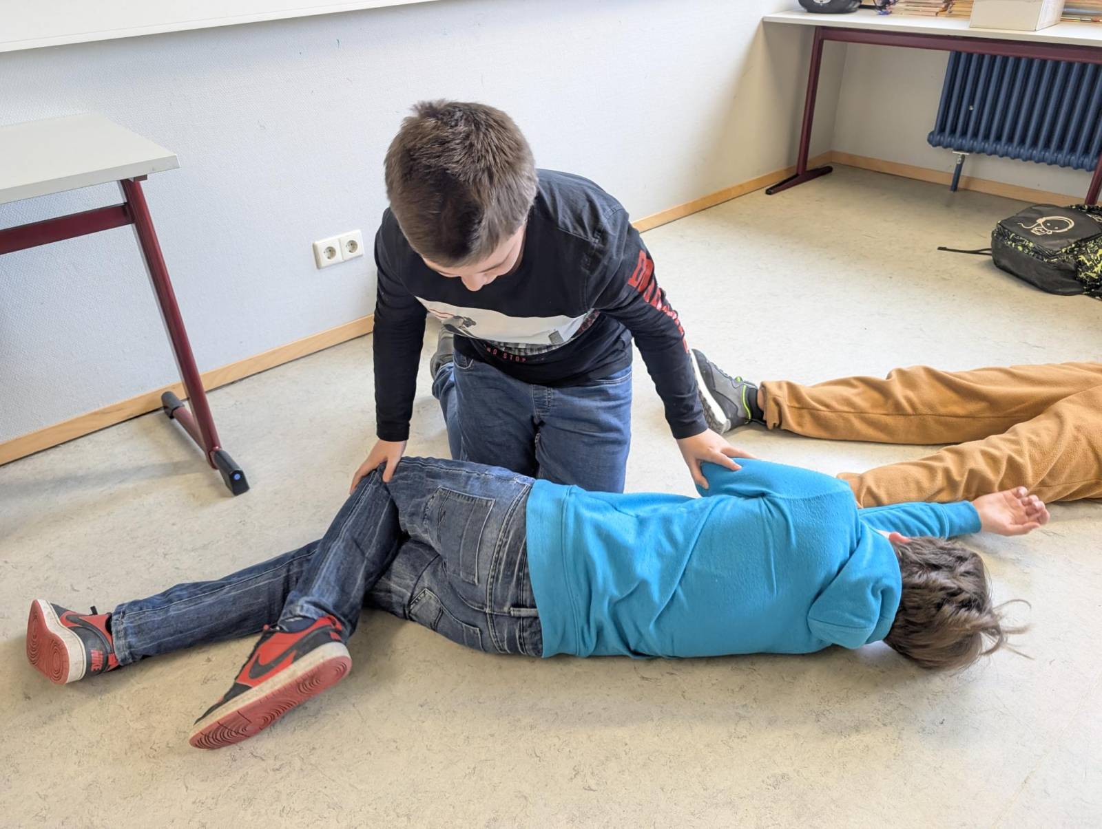 Auch in diesem Jahr geben sich die Schüler der Sozialwerkstatt "Schulsanitäter" wieder alle Mühe die Grundlagen der Ersten-Hilfe zu erlernen und so die Schule ein Stück weit sicherer zu machen. Mit Motivation und Fleiß werden Symptome und Maßnahmen, wie die stabile Seitenlage gelernt und ein kleines Ersthelfer-Heft geführt.